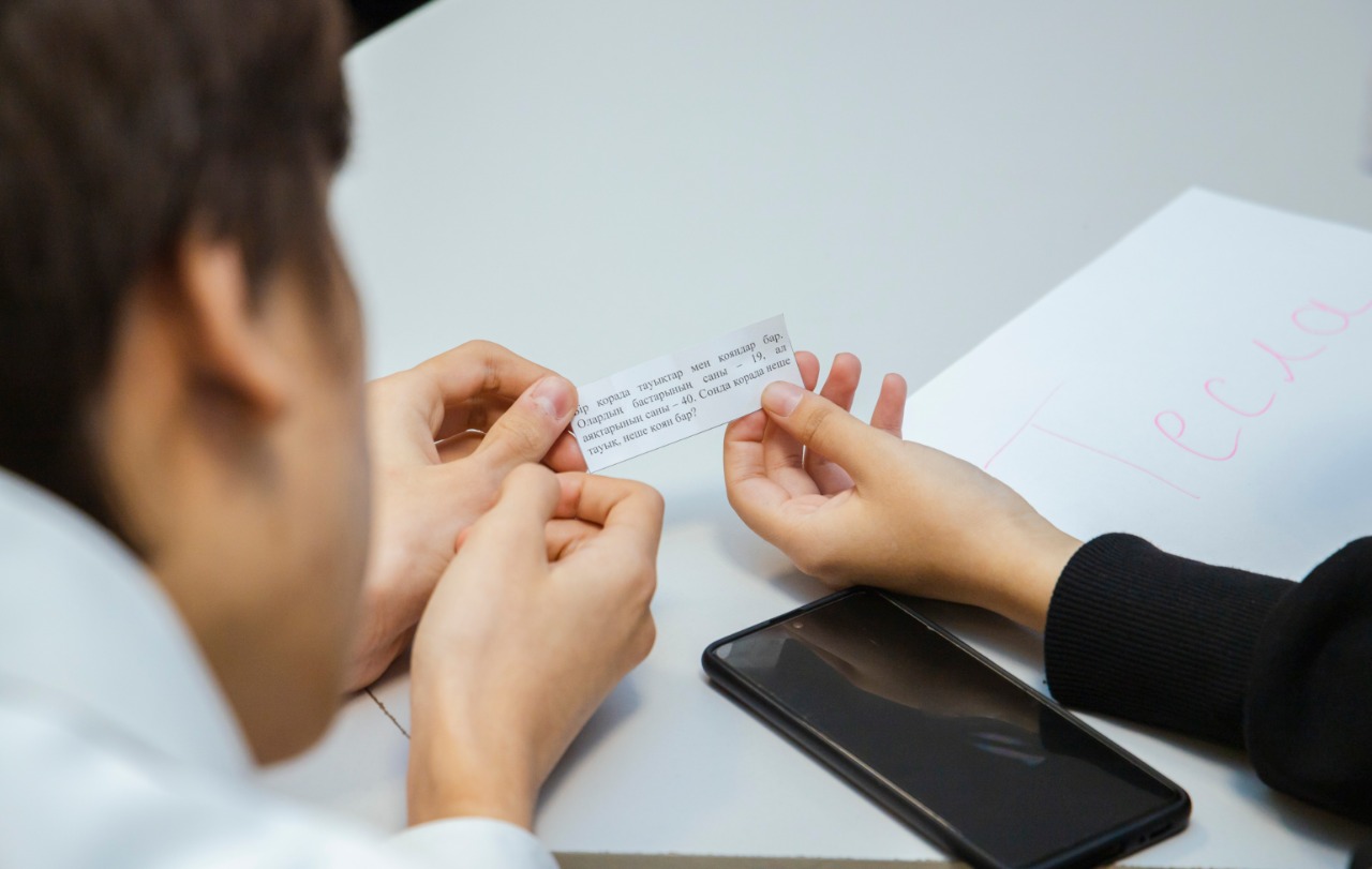 Разделившись на 2 команды «Алаш» и «Тесло», учащиеся активно отвечали на вопросы по математике, с интересом участвовали в игре.