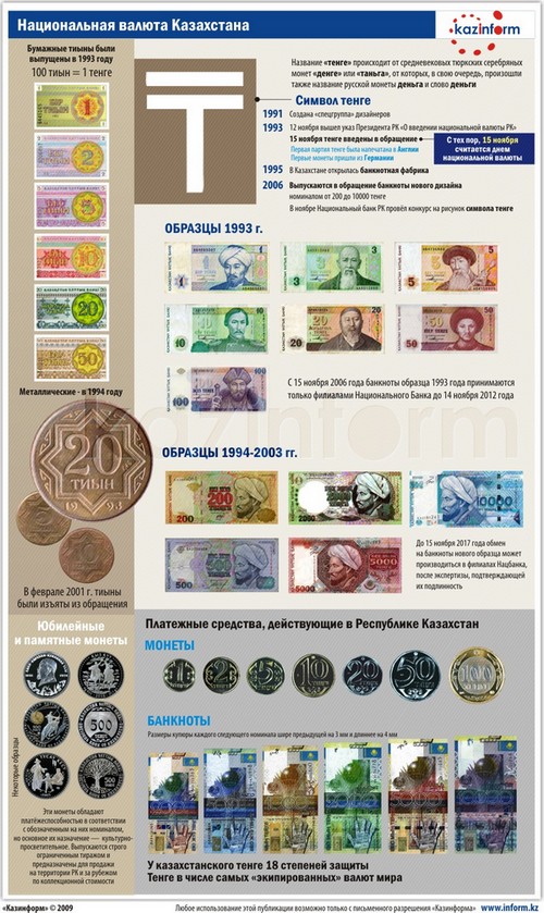 15 ноября 1993 г. граждане Казахстана впервые взяли в руки свою национальную валюту – казахстанский тенге. Это знаковое событие вписано в историю страны особыми строками, казахстанский тенге стал материальным оплотом независимости нашей Родины, подлинным инструментом экономического и политического суверенитета Казахстана. Кроме чисто экономической задачи национальная валюта наравне с Гербом, Флагом и Гимном является непременным атрибутом современного суверенного государства, а наши денежные знаки гордо представляют нашу страну за рубежом.