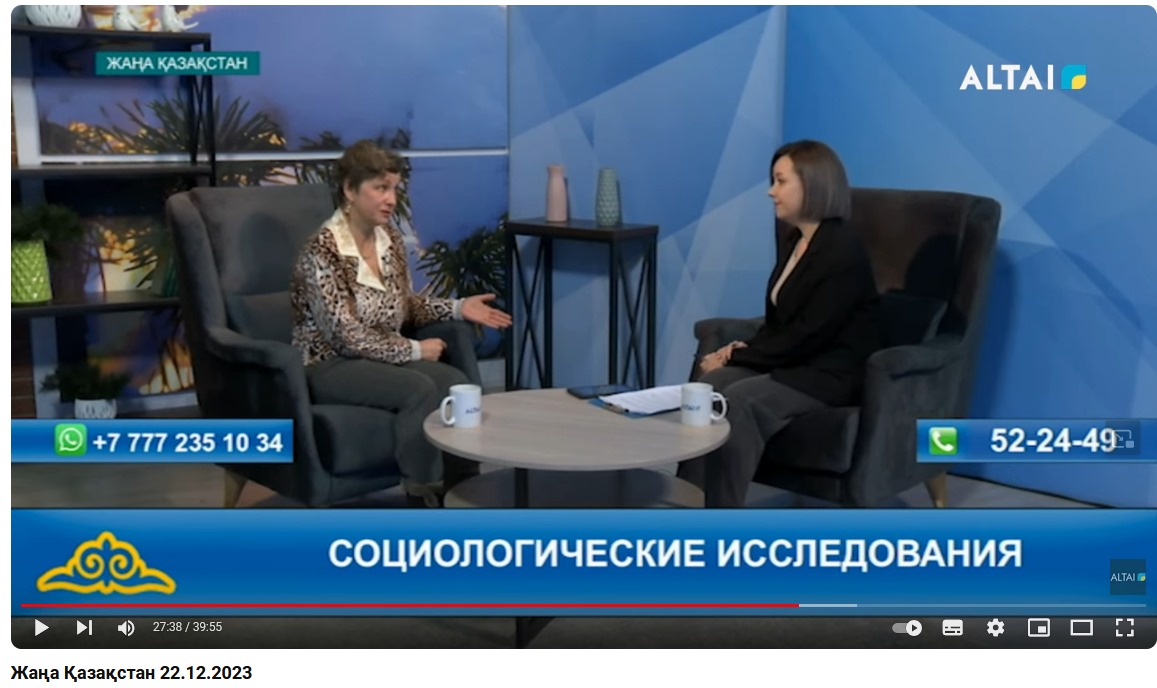 2023 жылдың соңында ALTAY TV телеарнасында "DSR" МНО бас ғылыми қызметкері Элеонора Столярованың қатысуымен тікелей эфир өтті. Бұл кездесу қазіргі қоғамның дамуы үшін ғылыми зерттеулердің маңыздылығы туралы әңгіменің жалғасы болды. Сұхбат тұрмыстық және тұрмыстық зорлық-зомбылық, әлеуметтік құндылықтар мен мінез-құлық үлгілерін қалыптастыру процестеріндегі отбасының рөлі сияқты өткір мәселелерге арналды. Енді бұл бейне материал ALTAI TV арнасының YouTube каналында да қолжетімді.