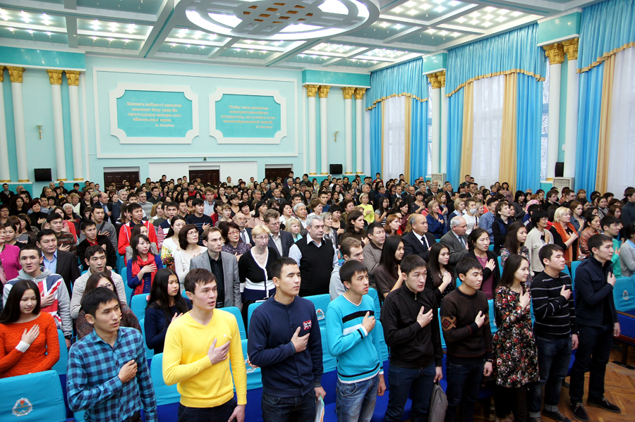По сложившейся традиции, прозвучал доклад, посвященный этому торжественному событию, в котором декан факультета машиностроения и транспорта ВКГТУ им.Д.Серикбаева Михаил Дудкин озвучил яркие достижения Казахстана за годы независимости, а также успехи университета за прошедший год.