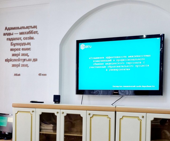 Психологиялық қызметтің жоспарына сәйкес университеттің медицина қызметкерлерімен «Жоғары оқу орнының оқу үдерісіне қатысушылармен медицина қызметкерлерінің тұлғааралық қарым-қатынасының және кәсіби қарым-қатынасының тиімділігін арттыру» тақырыбында семинар өткізілді.