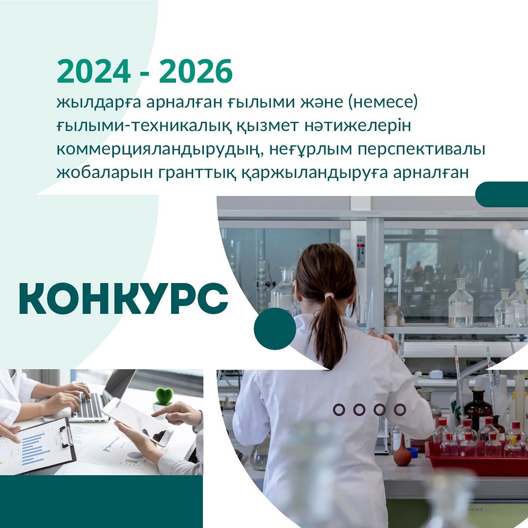 «Қазақстан Республикасы Ғылым және жоғары білім министрлігінің Ғылым комитеті» ММ 2024-2026 жылдарға арналған ғылыми және (немесе) ғылыми-техникалық қызмет нәтижелерін коммерцияландырудың неғұрлым перспективалы жобаларын гранттық қаржыландыруға арналған конкурстың өткізілетінін хабарлайды.