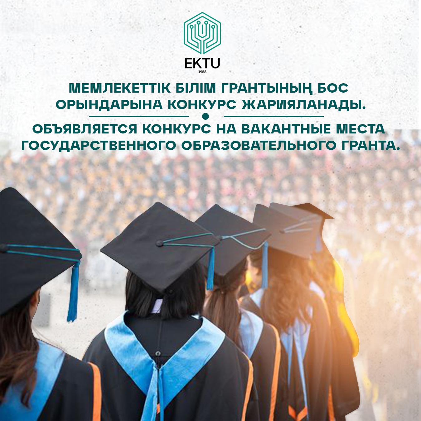 2023 жылдың 28-шы желтоқсаннан 2024 жылдың 12-ші қаңтарға дейін студенттерге қызмет көрсету орталығында жеке кабинет арқылы оқу процессі барысында босатылған Қазақстан Республикасы Ғылым және жоғары білім министрлігінің және жергілікті бюджет қаражаты есебінің (ЖАО гранты) бакалавриат, магистратура және докторантураның бос білім беру гранттарын тағайындау бойынша конкурсқа өтініштер онлайн-қабылданады.