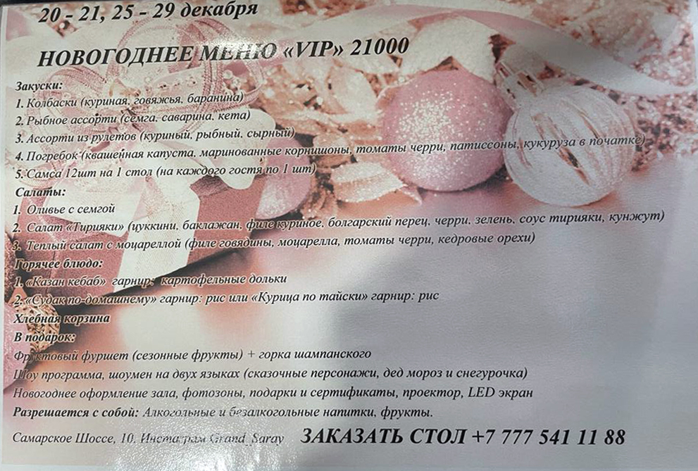 Меню прилагается на картинке. Оплата 21 000 тг.