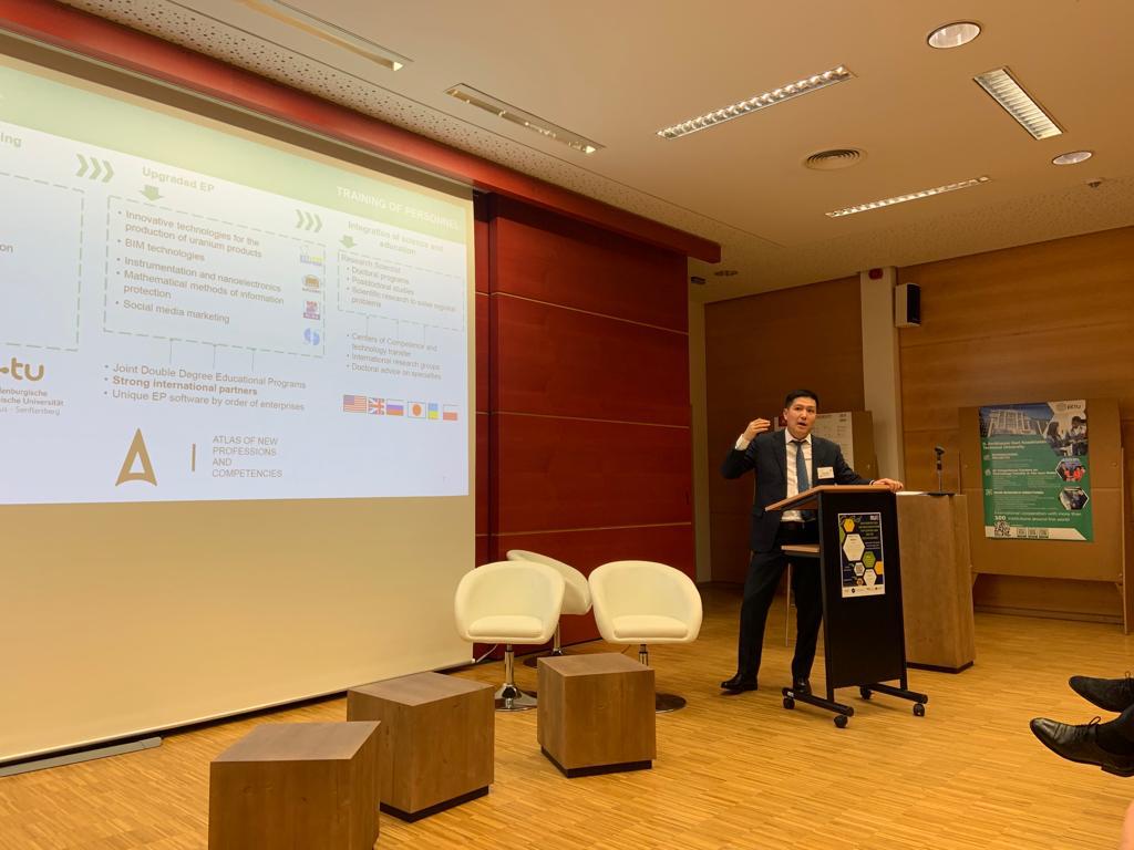 Член Правления-проректора по международному сотрудничеству ВКТУ им. Д. Серикбаева, к.э.н Ертай Султан выступил с докладом на тему «Формирование структуры консорциумов как перспективной модели казахстанских вузов» на основе международных проектов, реализуемых на базе университета.