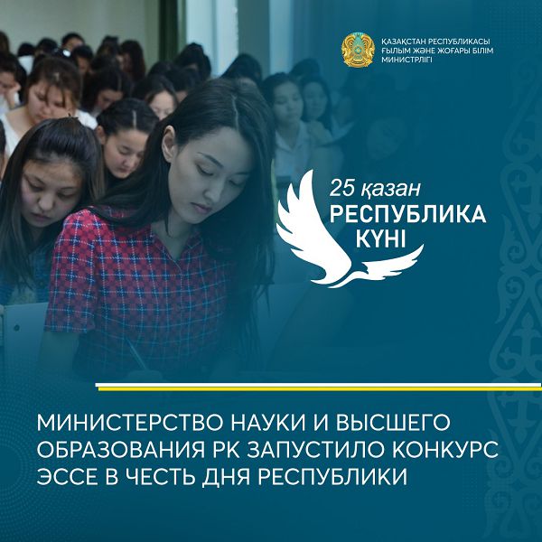Министерство науки и высшего образования РК запустило Конкурс эссе на тему: «Казахстан моей мечты» в честь Дня Республики.
