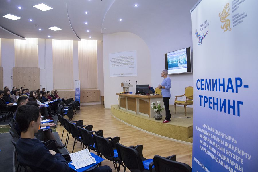 Семинары посвящены таким темам, как «Продвижение программы «Рухани жаңғыру – стратегическое планирование», «Рухани жаңғыру в контексте культуры публичных выступлений», «Деловые коммуникации. Как повысить эффективность медиапланирования» и другим вопросам. Обучение проводят известные сертифицированные международные тренеры, государственные и общественные деятели.