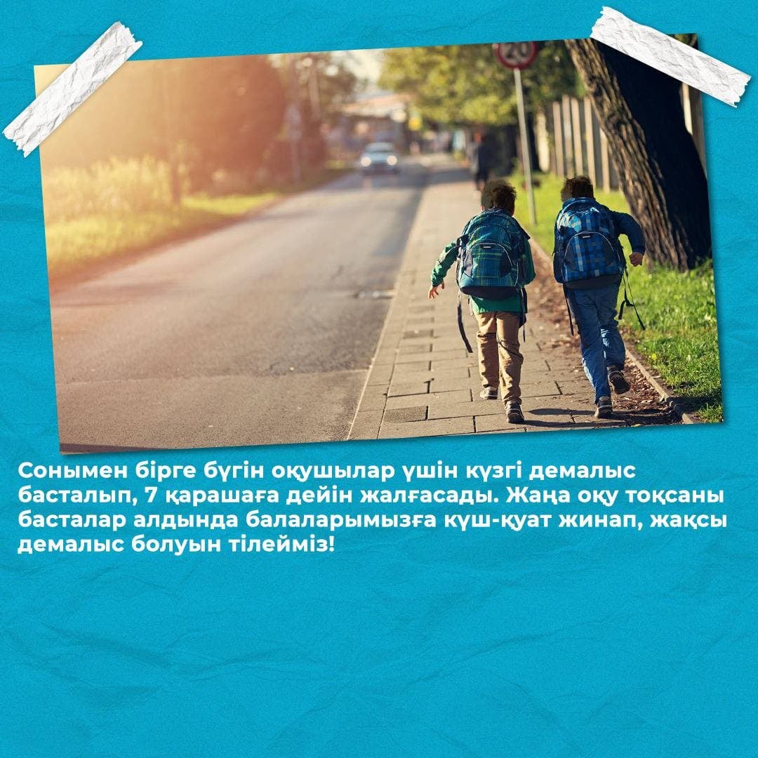 Сонымен бірге бүгін оқушылар үшін күзгі демалыс басталып, 7 қарашаға дейін жалғасады. Жаңа оқу тоқсаны басталар алдында балаларымызға күш-қуат жинап, жақсы демалыс болуын тілейміз!