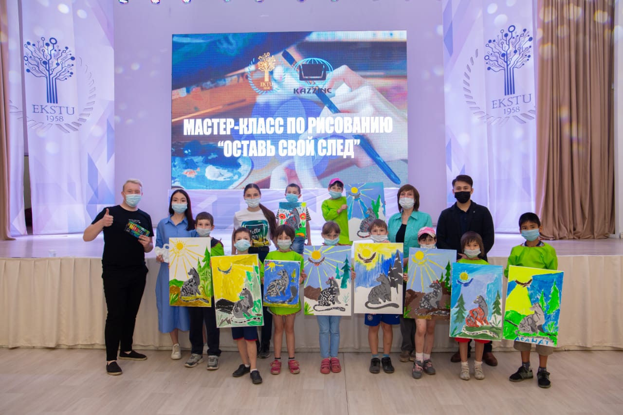 В честь дня государственных символов РК был организован мастер-класс по рисованию для 10 детей, которые сейчас находятся в центре адаптации несовершеннолетних. Студентка ВКТУ Галина Ляпунова, подготовила для юных художников эскизы, рассказала, как нужна работать с акриловыми красками и на протяжении всего мастер-класса помогала «творить чудо».