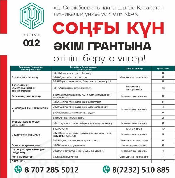 ВКТУ им. Д. Серикбаева ждет вас с нетерпением!