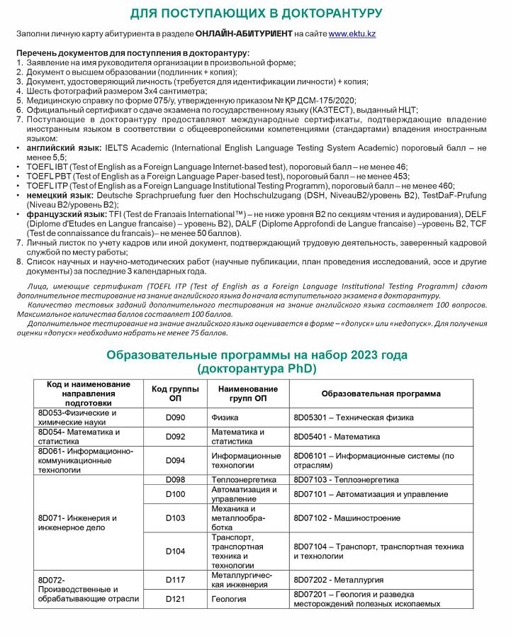 Online Admission of International Students to the D. Serikbayev EKTU