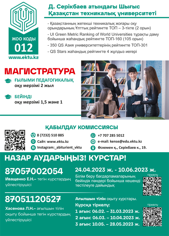Научный журнал «Вестник ВКТУ им.Д.Серикбаева»