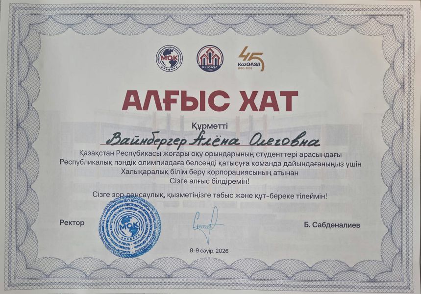 2026 жылдың 8 сәуірінде Халықаралық білім беру корпорациясының Дизайн мектебі базасында (ҚазБСҚА, Алматы қ.) Республикалық пәндік олимпиаданың шешуші ІІ кезеңі өтті. «Сәулеттік дизайн элементтері мен процестері» (3-курс) және «Сәулеттік дизайн нысандарын жобалау» (4-курс) пәндері бойынша өткен кәсіби сайысқа Қазақстанның 7 жетекші бейіндік жоғары оқу орнынан 53 студент қатысты.