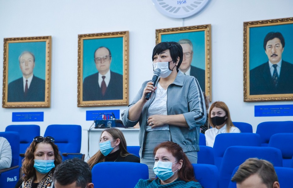 Ректор университета Шаймарданов Жасулан Кудайбергенович подробно рассказал участникам мероприятия о том, какие положительные изменения случились с университетом за прошедший год, а также о будущих планах.