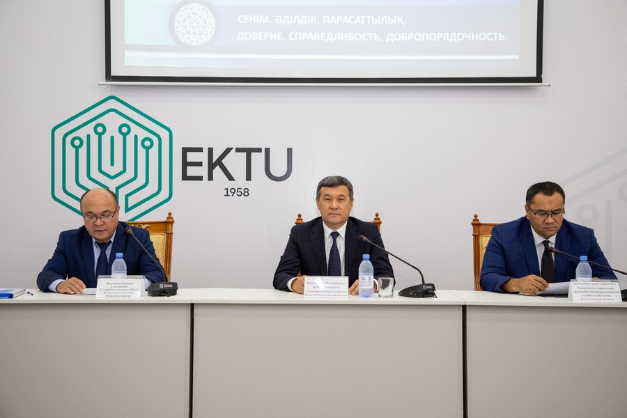 8 сентября текущего года в Восточно-Казахстанском техническом университете им. Д. Серикбаева по инициативе Агентства РК по противодействию коррупции на всей территории страны в рамках единого общереспубликанского мероприятия «Час добропорядочности» прошла лекция «Доверие. Справедливость. Добропорядочность».