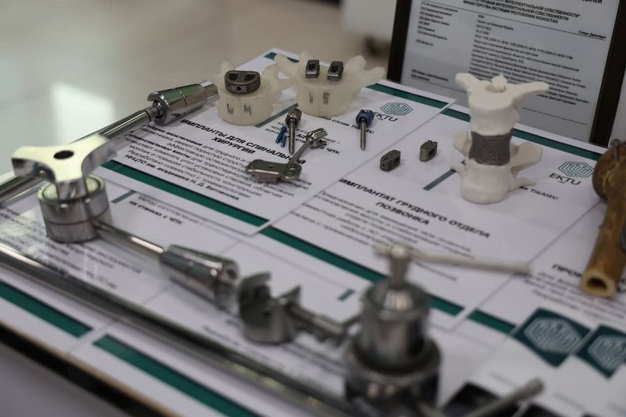 Особый интерес участников вызвал проект по разработке технологии изготовления отечественных медицинских инструментов и изделий медицинского назначения. Университет представил линейку инструментов для хирургии, травматологии и ортопедии, а также более 20 видов имплантатов, включая персонализированные решения для замещения костных дефектов при онкологических заболеваниях. В рамках клинических исследований при поддержке Национального научного центра травматологии и ортопедии им. академика Н.Д. Батпенова проведено свыше 140 операций. Проект ориентирован на импортозамещение и формирование собственной технологической базы медицинского приборостроения. В настоящее время ведётся работа по созданию совместного предприятия на базе Восточно-Казахстанского регионального технопарка «Алтай» для запуска серийного производства отечественных изделий.