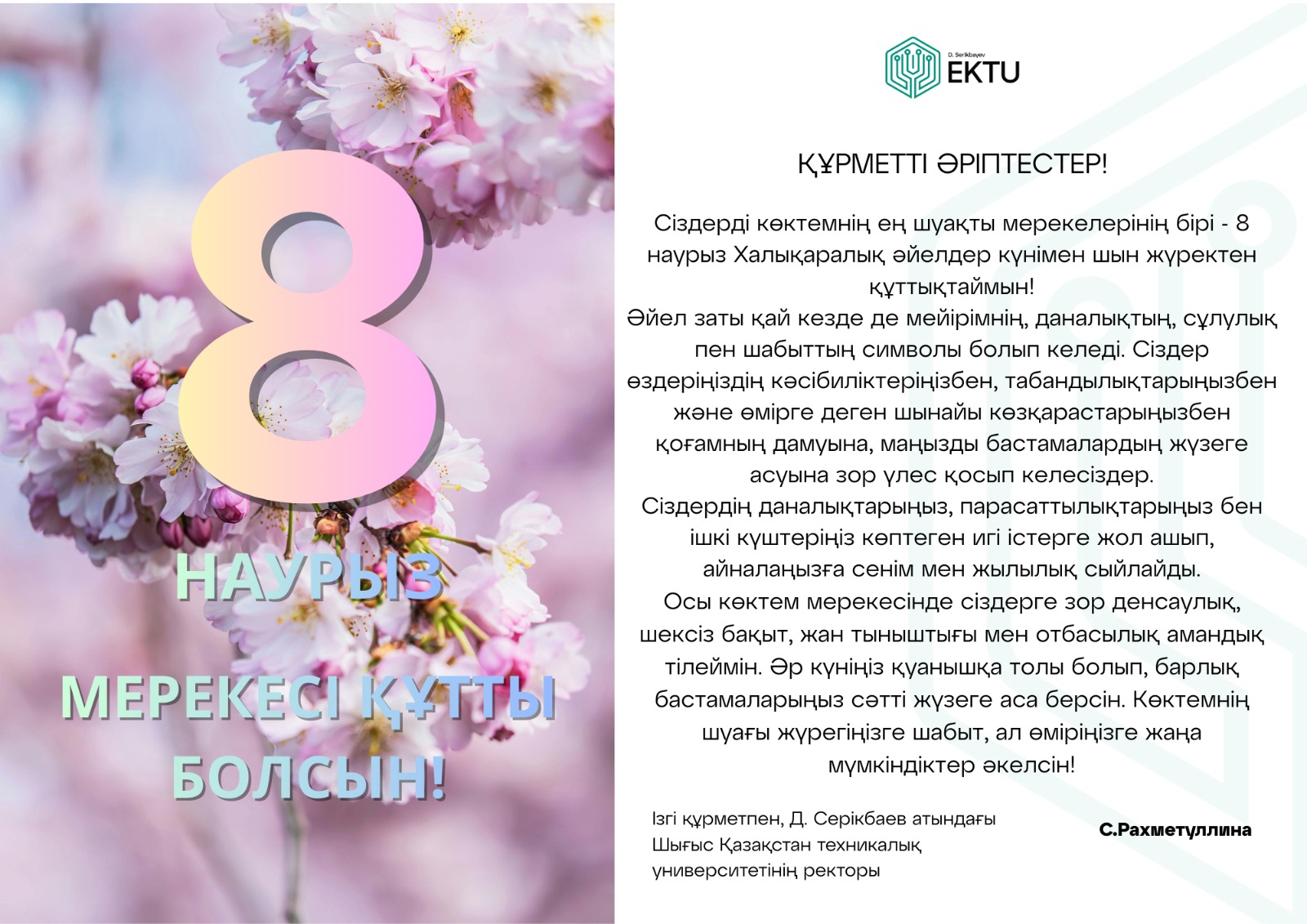 8 наурыз Халықаралық әйелдер күні құтты болсын!