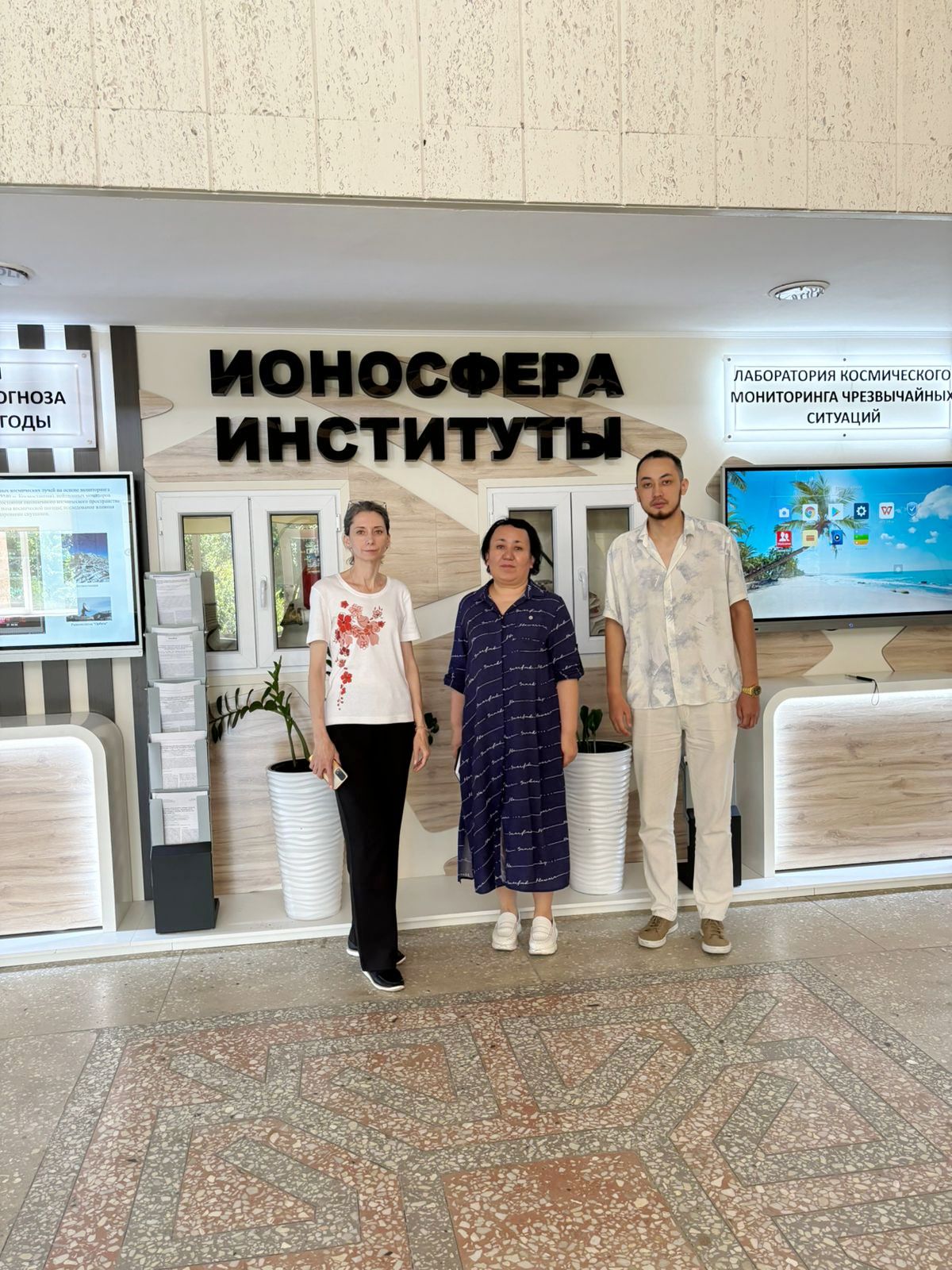 ШҚТУ қызметкерлері Ионосфера Институтының мамандарымен кездесті, жоба бойынша жұмыстардың орындалу барысымен танысты, күнтізбелік жоспарға сәйкес жұмыстардың дайындығын талқылады, одан әрі жұмыс жоспарын анықтады, Институттың материалдық-техникалық базасымен танысты.
