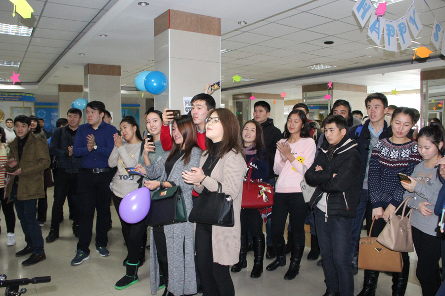 17 ноября студенчество Казахстана и всего мира отмечает свой праздник. Сегодня в ВКГТУ им. Д. Серикбаева студенческим молодежным Парламентом был организован праздничный концерт, проведены веселые игры и конкурсы, по окончании которых всех ждали награды и призы. Также прошла праздничная ярмарка, были запущены видеопоздравления деканов факультетов, преподавателей и студентов. Организаторы порадовали присутствующих энергичными и зажигательными танцами, исполненными под музыку в современной аранжировке, игрой на домбре и гитаре. Праздник собрал большое количество студентов, которые активно принимали в нем участие. По окончании мероприятия студенты уходили в хорошем настроении и с улыбками на лице, а самое главное – с множеством подарков и выпечкой, реализованной на праздничной ярмарке. Надеемся, что это мероприятие запомнится всем надолго.