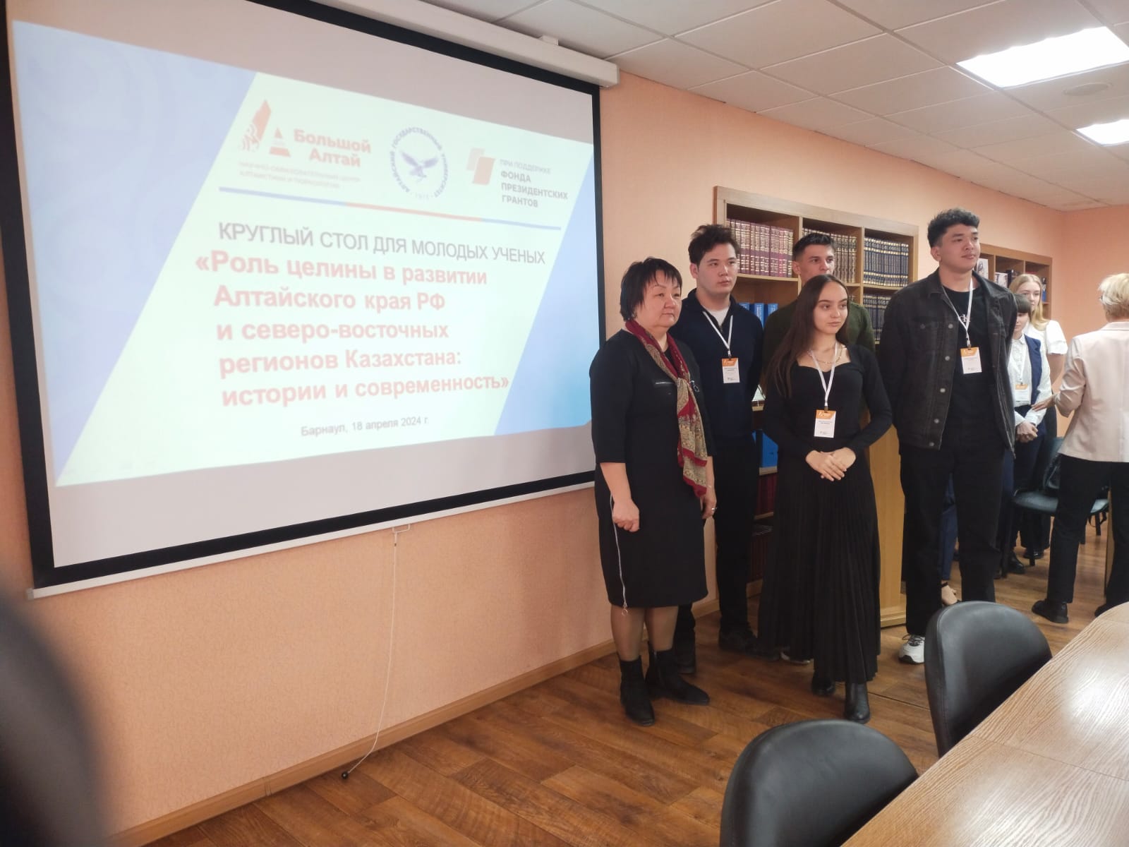 18 апреля 2024 г. в Алтайском государственном университете (г.Барнаул) состоялся круглый стол для молодых исследователей «Роль целины в развитии Алтайского края РФ и северо-восточных регионов Казахстана: истории и современность». Мероприятие провел НОЦ алтаистики и тюркологии «Большой Алтай» с использованием гранта Президента Российской Федерации, предоставленного Фондом президентских грантов. Цель круглого стола - инициировать научное обсуждение кампании подъема целины, ее результатов и влияния на последующую историю Алтайского края и северо-восточных регионов Казахстана.