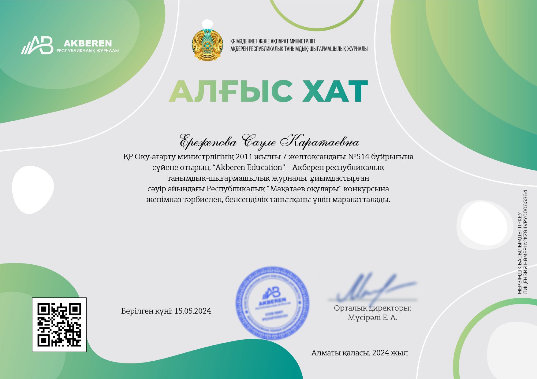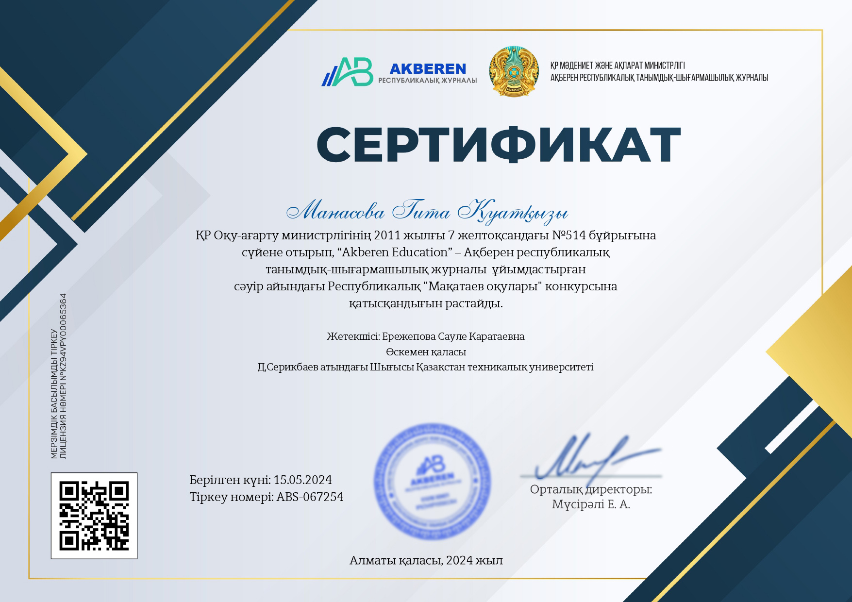 2024 жылдың сәуір айында Д. Серікбаев атындағы ШҚТУ студенттері "Akberen Education" - "Ақберен" Республикалық танымдық-шығармашылық журналы ұйымдастырған "Мақатаев оқулары" Республикалық байқауына қатысты.