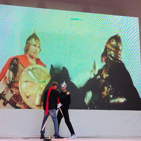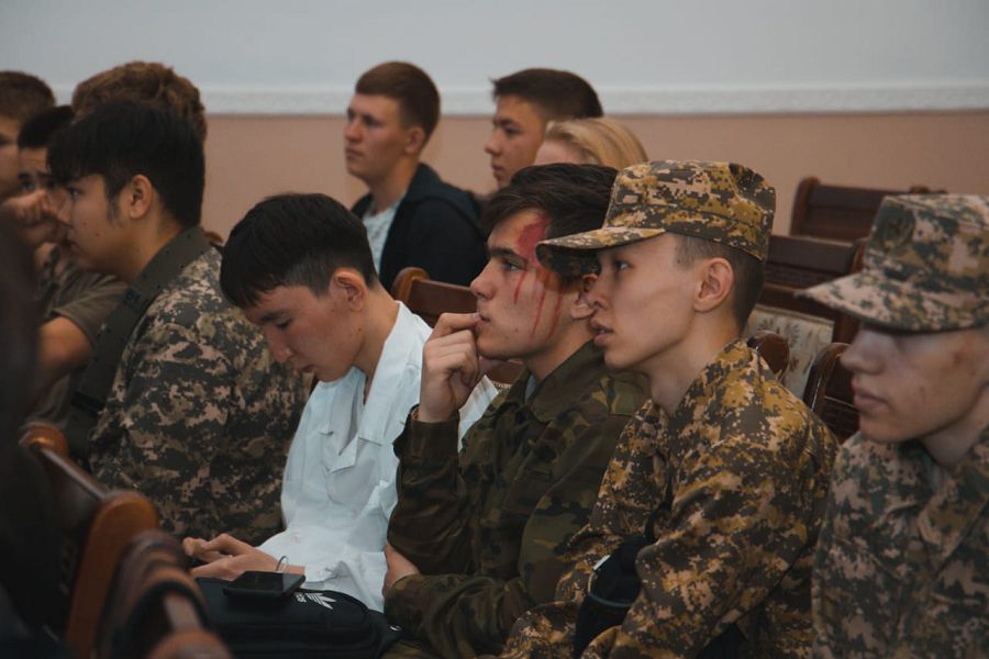 9-ОД-1р тобының студенттері А.Т.Твардовскийдің "Василий Теркин" поэмасы негізінде қарапайым және маңызды әскери сәттер, қарапайым сарбаздардың ерлігі, рух күші туралы қойылым ұсынды.