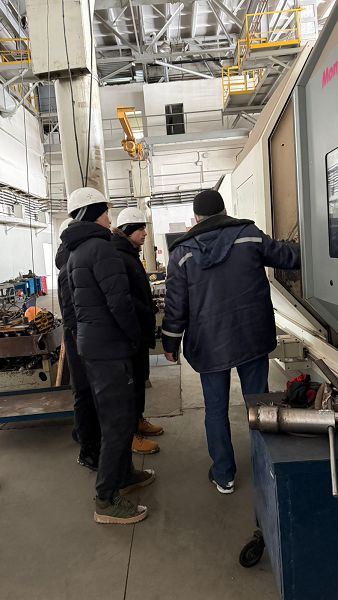 Экскурсия барысында цех басшылары студенттерге кәсіпорын құрылымы мен негізгі технологиялық учаскелерді таныстырды. Білім алушылар өндірістік станоктарда бөлшектерді дайындау үдерісін, соның ішінде сандық бағдарламалық басқаруы (СББ) бар жабдықтардың жұмысын көрді, сондай-ақ шығарылатын дайын өнім үлгілерімен танысты. Зауыт мамандары металл өңдеудің практикалық тәсілдерін көрсетіп, қолданылатын технологияларды түсіндіріп, операцияларды орындаудағы дәлдік пен сапа талаптарын атап өтті.