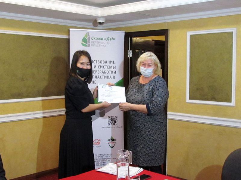 This training was organized by the «Center for the Promotion of Sustainable Development» within the framework of the project «Say «YES!» plastic recycling». The project is supported by the international Foundation «The Coca-Cola Foundation». It aims to increase public awareness of the need for separate collection and processing of plastic waste and finding solutions to problems in the management of plastic waste, to increase the volume of collection and processing in Kazakhstan. This project is also supported by the Ministry of Ecology, Geology and Natural Resources of Kazakhstan.