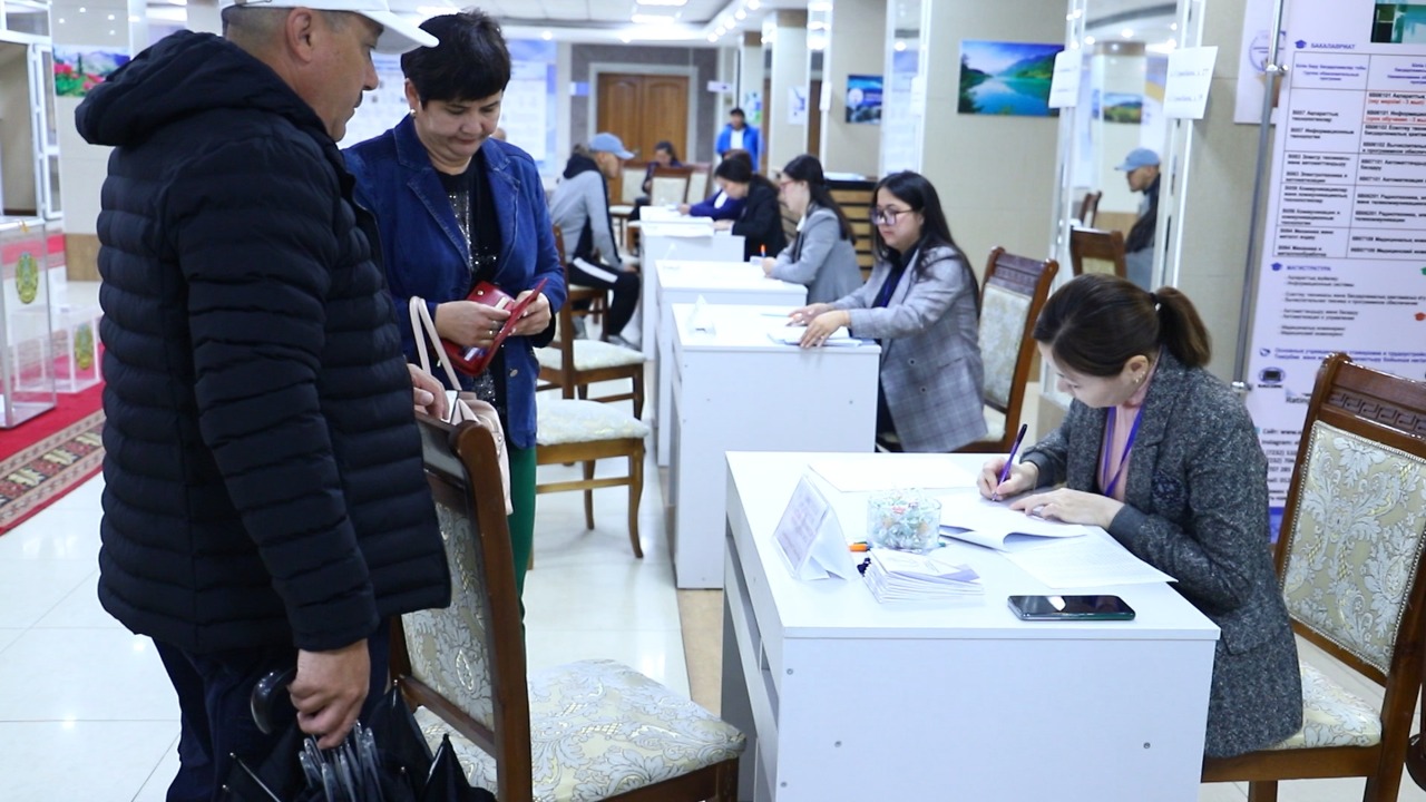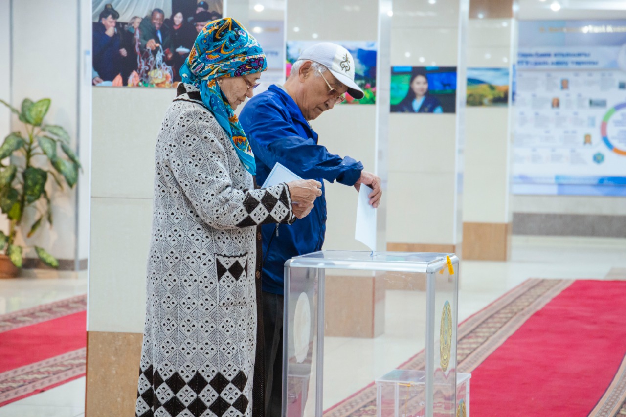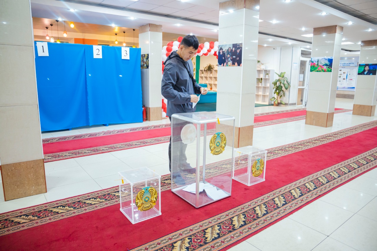 Ауа-райының жайсыздығына қарамастан, бірінші болып ШҚТУ-да орналасқан №74 сайлау учаскіне 04.04.1949 жылы туған Мозговой Сергей Никитович дауыс беруге келді. Жастар да белсенділік танытып өз дауыстарына беруге келіп жатыр. Алғаш рет дауыс беруші - Сағынтаев Диас Даулетұлы.