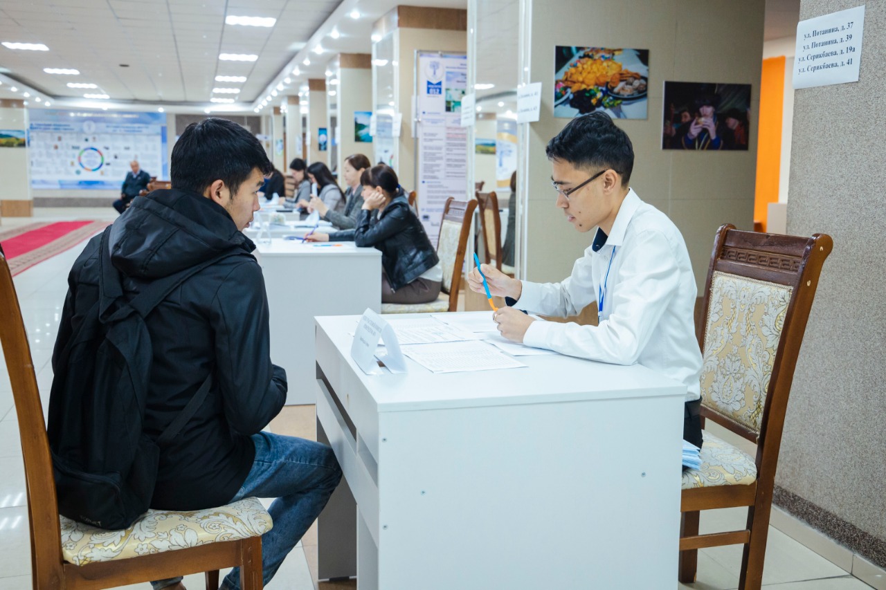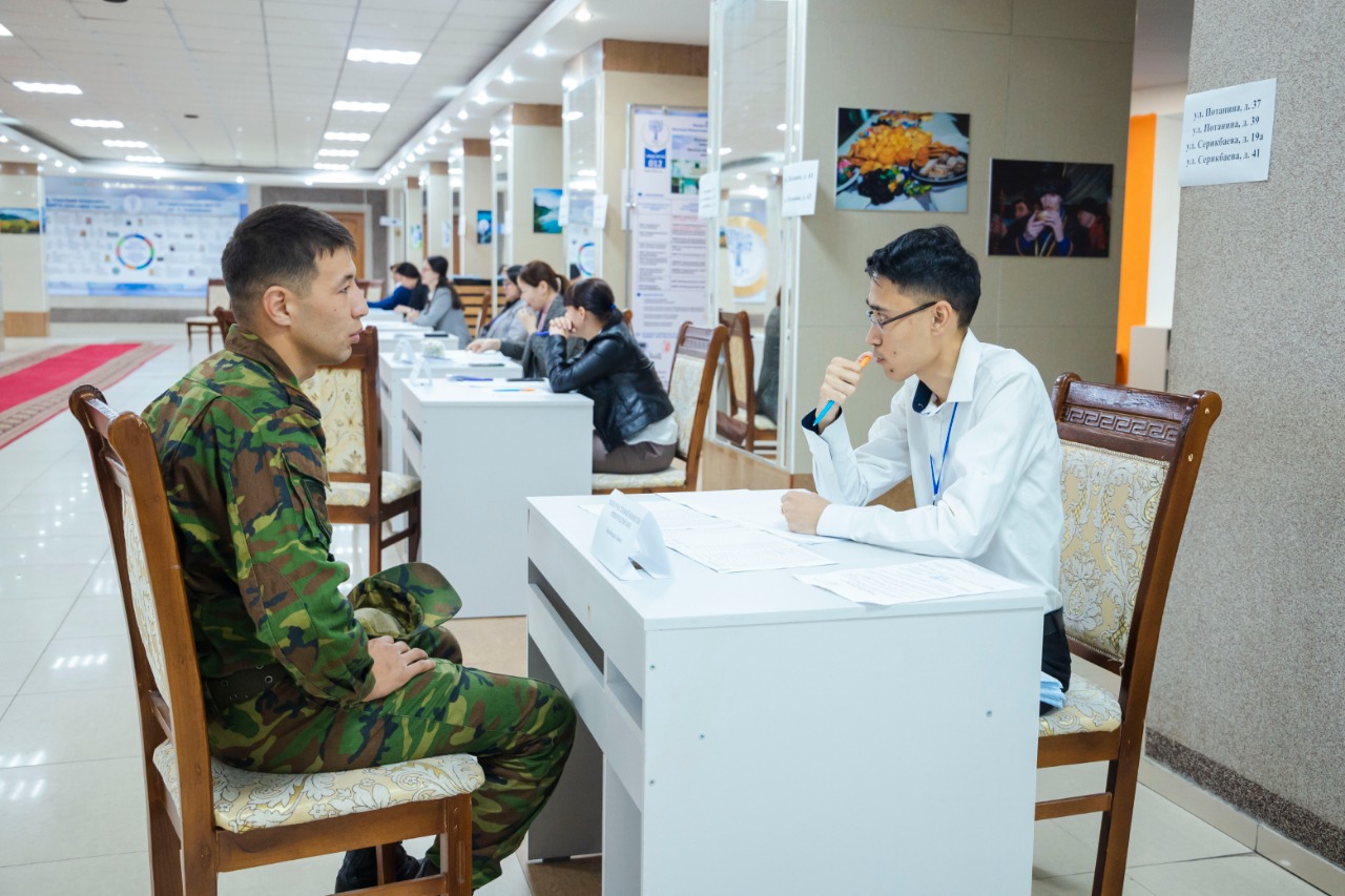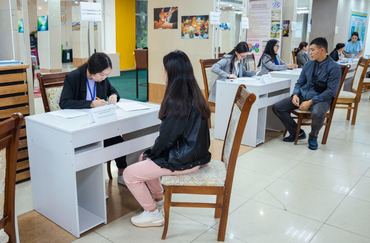 Ауа-райының жайсыздығына қарамастан, бірінші болып ШҚТУ-да орналасқан №74 сайлау учаскіне 04.04.1949 жылы туған Мозговой Сергей Никитович дауыс беруге келді. Жастар да белсенділік танытып өз дауыстарына беруге келіп жатыр. Алғаш рет дауыс беруші - Сағынтаев Диас Даулетұлы.