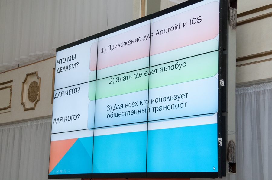 The final day of the contest took place in EKSTU, where the list of projects was announced. The finalists presented their work to the mentors, and after that the best projects were selected by voting. Teams had no more than 3 minutes to present their project. In quarter finals there were 13 projects. It should be noted that there were 114 application from East Kazakhstan Region, only 38 were accepted and 16 of them had a chance for the presentation.