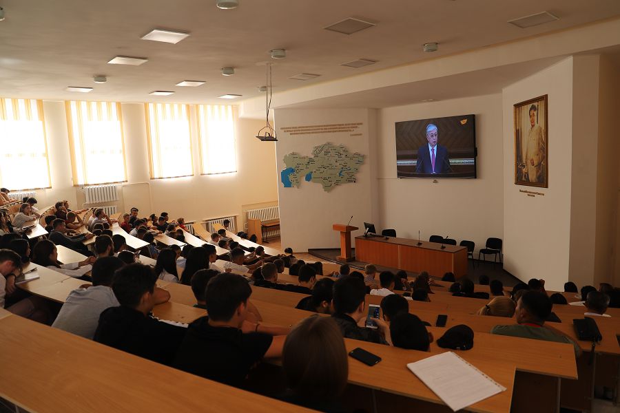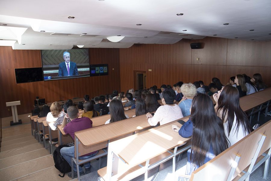Каждое новое обращение Президента страны к народу - определяющий вектор успешного развития нашего государства. Это стратегически важный документ страны. Сегодня просмотр трансляции проводился в 3-х разных аудиториях. Затем самые значимые пункты выносились на обсуждение.