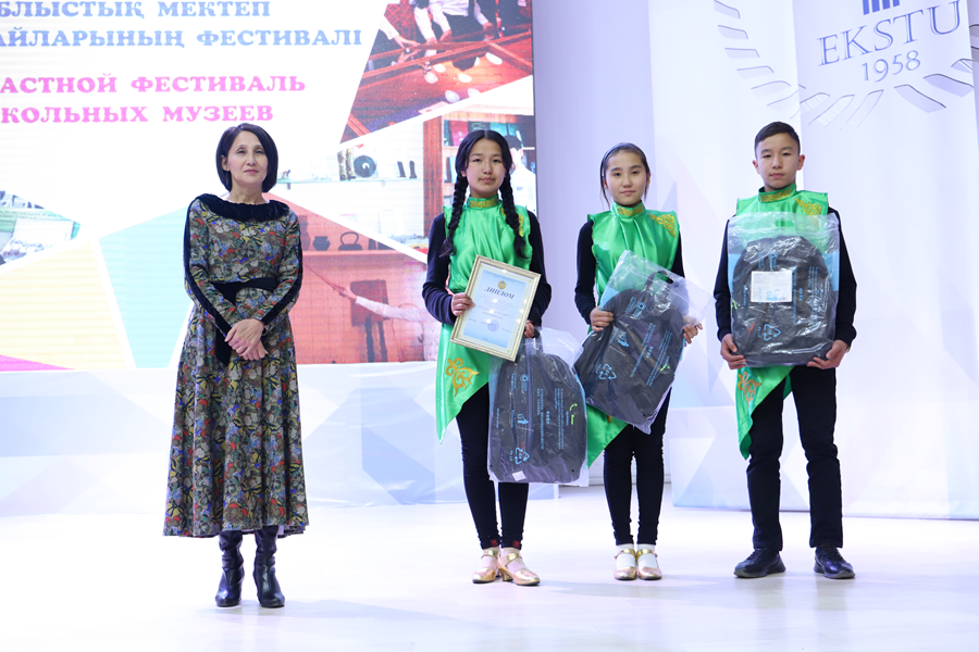 小学生 - 学校博物馆成员获了奖,教师获得证书。 在节日后,为参加者组织了一次在D.Serikbayev EKSTU“大阿尔泰”博物馆的参观活动。