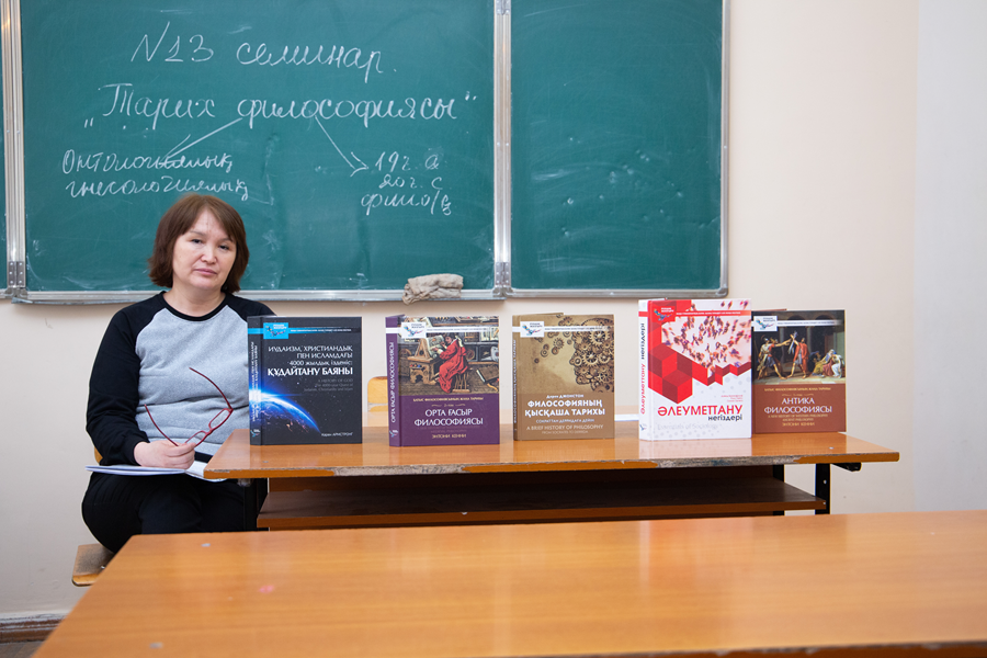 Преподаватель философии Лаура Абдыгалиева отмечает, что при выборе учебников для перевода на казахский язык основной упор был сделан на гуманитарные дисциплины. В частности, только по философии было переведено шесть учебников. Это дало возможность казахстанским студентам изучать предмет по современным западным теориям и концепциям, а преподавателям использовать самую прогрессивную методику. Как отмечают преподаватели и студенты, занятия по философии с опорой на новые книги стали более интереснее и понятнее.