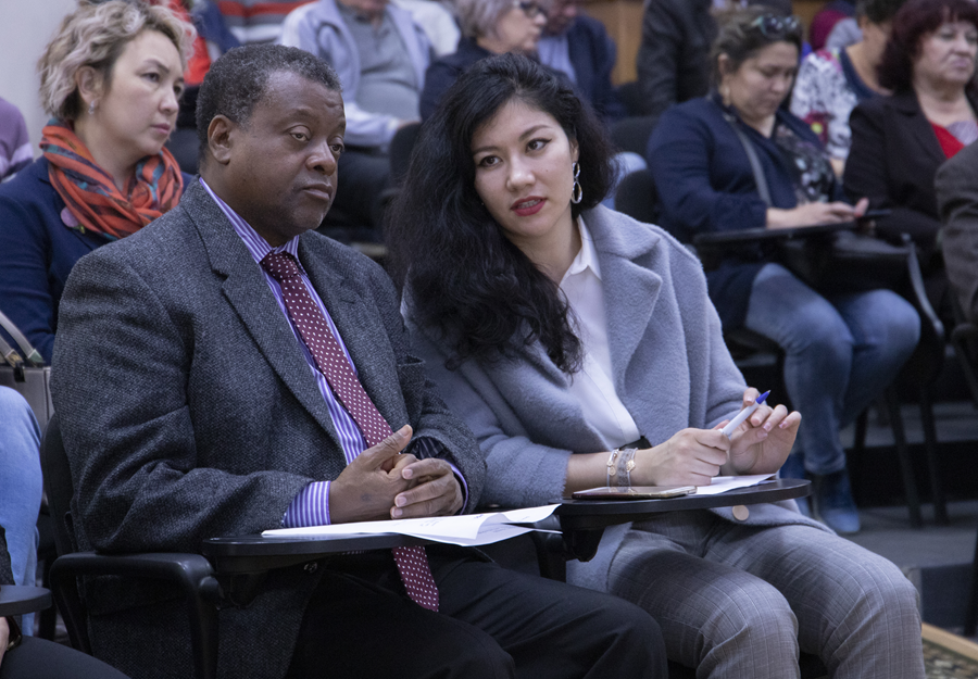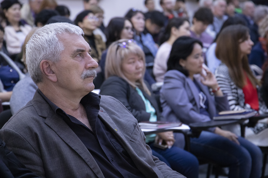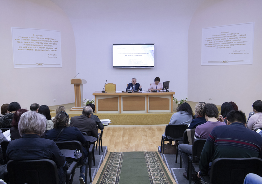 Спикерами выступило руководство университета: ректор Жасулан Шаймарданов, первый проректор Сауле Рахметуллина, проректор по учебно-методической работе Жадыра Конурбаева, проректор по научному развитию и инновациям Олег Гавриленко, главный бухгалтер Наталья Всяких и директор департамента по социальному и гражданскому развитию Нелли Краснобаева.