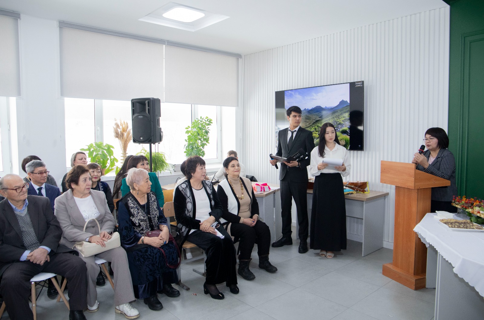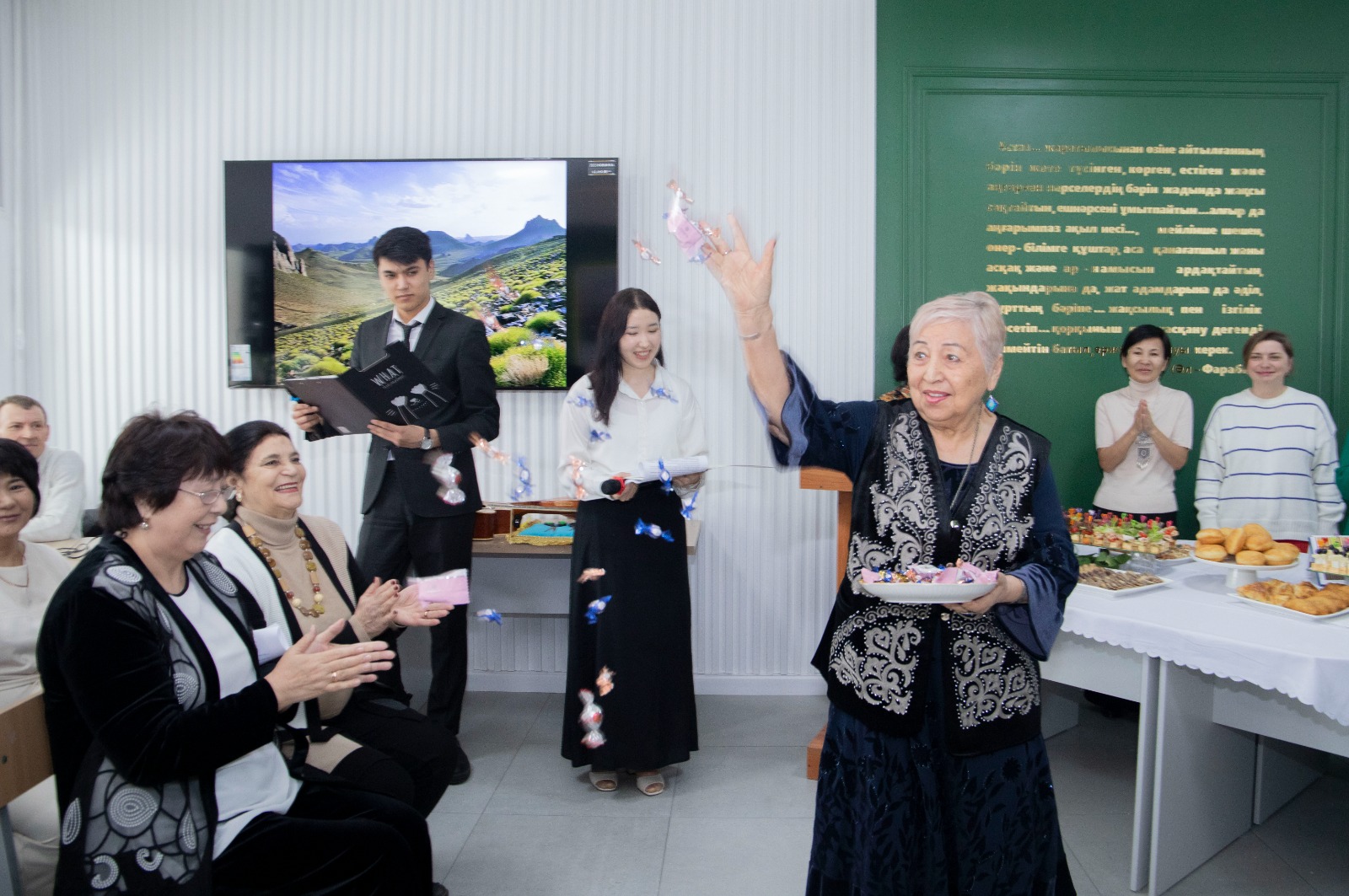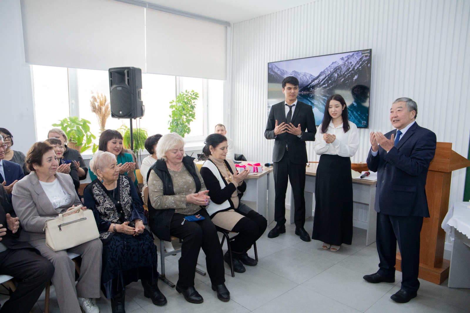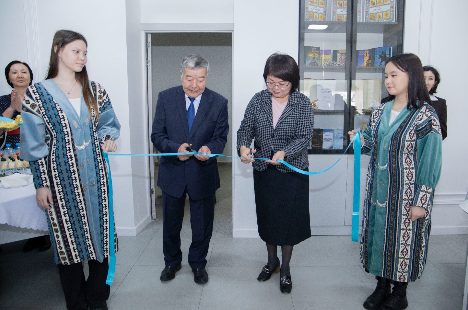 Ашылу салтанатына университет ардагерлері, профессорлары және басқалары әріптесін, досын, ұстазын құттықтап, шуақты сәттерімен бөлісті. Жаңа ашылған дәрісхананың лентасын Д. Серікбаев атындағы ШҚТУ Басқарма Төрағасы - Ректор Сәуле Жәдігерқызы мен Жақсыкелді Дүсіпқанұлы салтанатты түрде қиды. Шашу шашып, жылы лебіздерін білдірді.