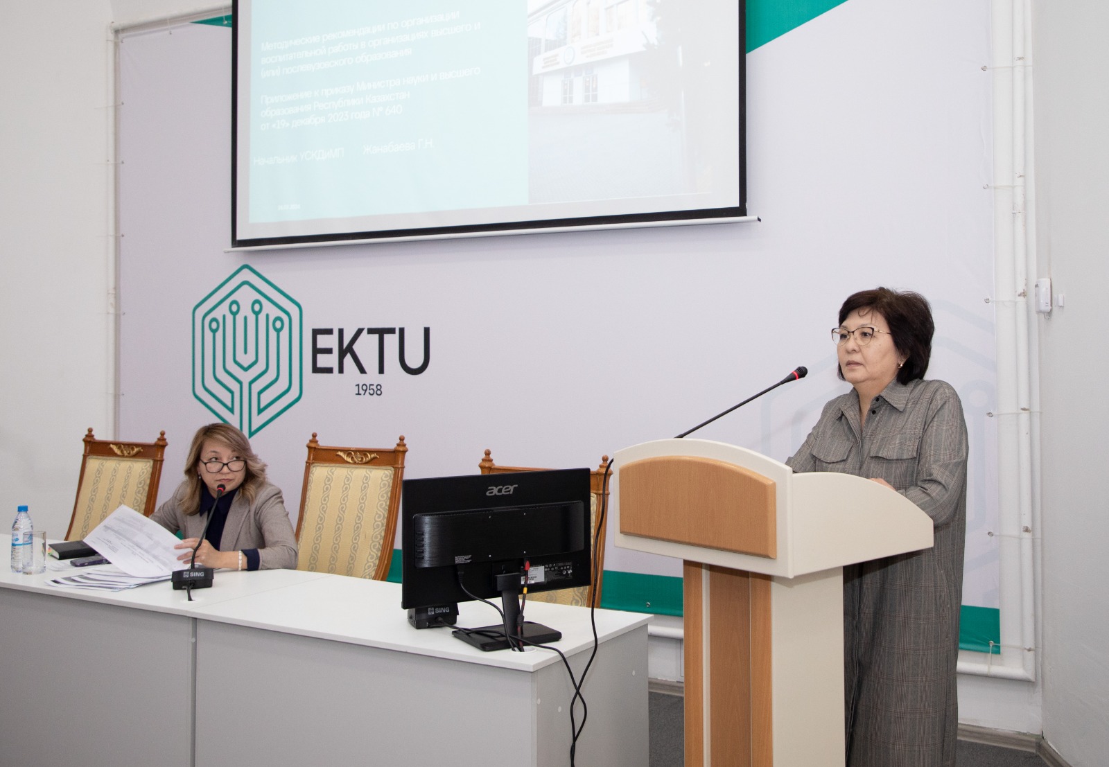 Әлеуметтік-мәдени қызмет және жастар саясаты жөніндегі басшысы Жаңабаева Гүлнара Нұртасқызы жоғары оқу орындарындағы тәрбие процесінің өзекті бағыттары - ҚР Ғылым және жоғары білім министрлігінің ұсынымдары, тәрбие жұмысын ұйымдастыру бойынша әдістемелік ұсынымдар, негізгі міндеттер және ШҚТУ-дың оқу-тәрбие қызметіндегі кураторлық жұмысты қалай өзгерту және күшейту керектігі туралы айтып берді.