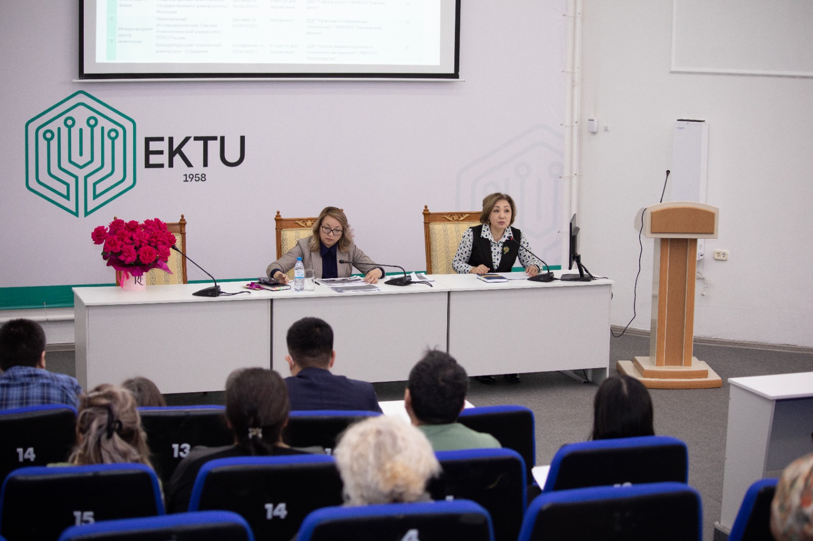 Басқарма мүшесі-академиялық мәселелер жөніндегі проректор Машекенова Әсия Хасенқызы ШҚТУ-да екі дипломдық бағдарламалар мен бірлескен білім беру бағдарламаларын іске асыру туралы деканат пен ректоратты алдағы алты жылға жоспарланған екі дипломдық бағдарламалар туралы, қолданыстағы білім беру бағдарламаларына жаңарту жүргізілетіні, басқа елдердің білім беру нарықтарына шығу мүмкіндігінің нұсқалары және ББП және ЖДП түлектерінің бәсекелестік артықшылығын арттыру бойынша ұсыныстармен таныстырды.