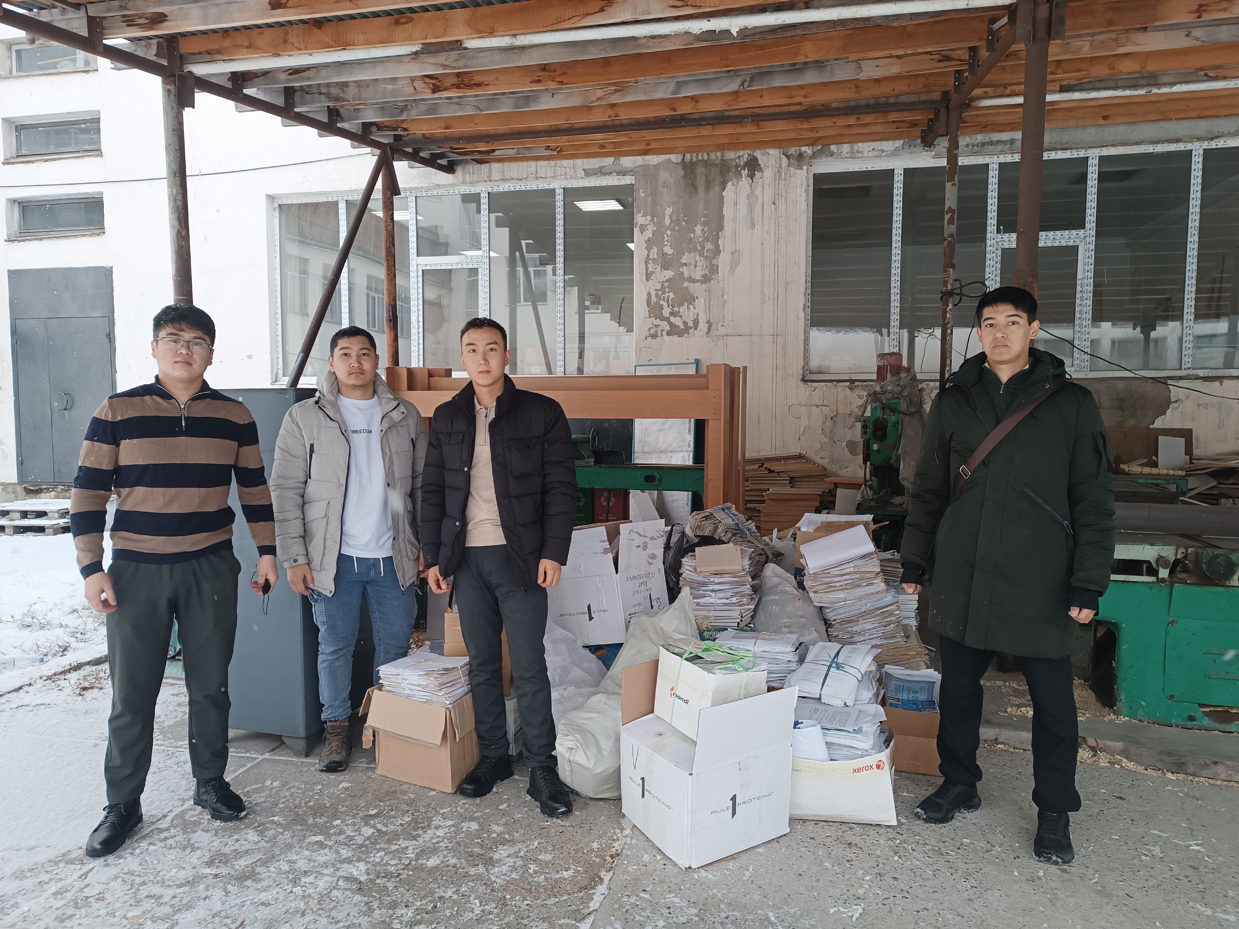 Идея раздельного сбора мусора требует активного продвижения среди жителей города, поэтому для популяризации данной идеи в университете был организован внутренний конкурс по сбору макулатуры. Прием макулатуры осуществляли сотрудники Центра компетенций в области экологии и БЖД Советбекова Дана Кайраткызы и Петрова Ольга Анатольевна.