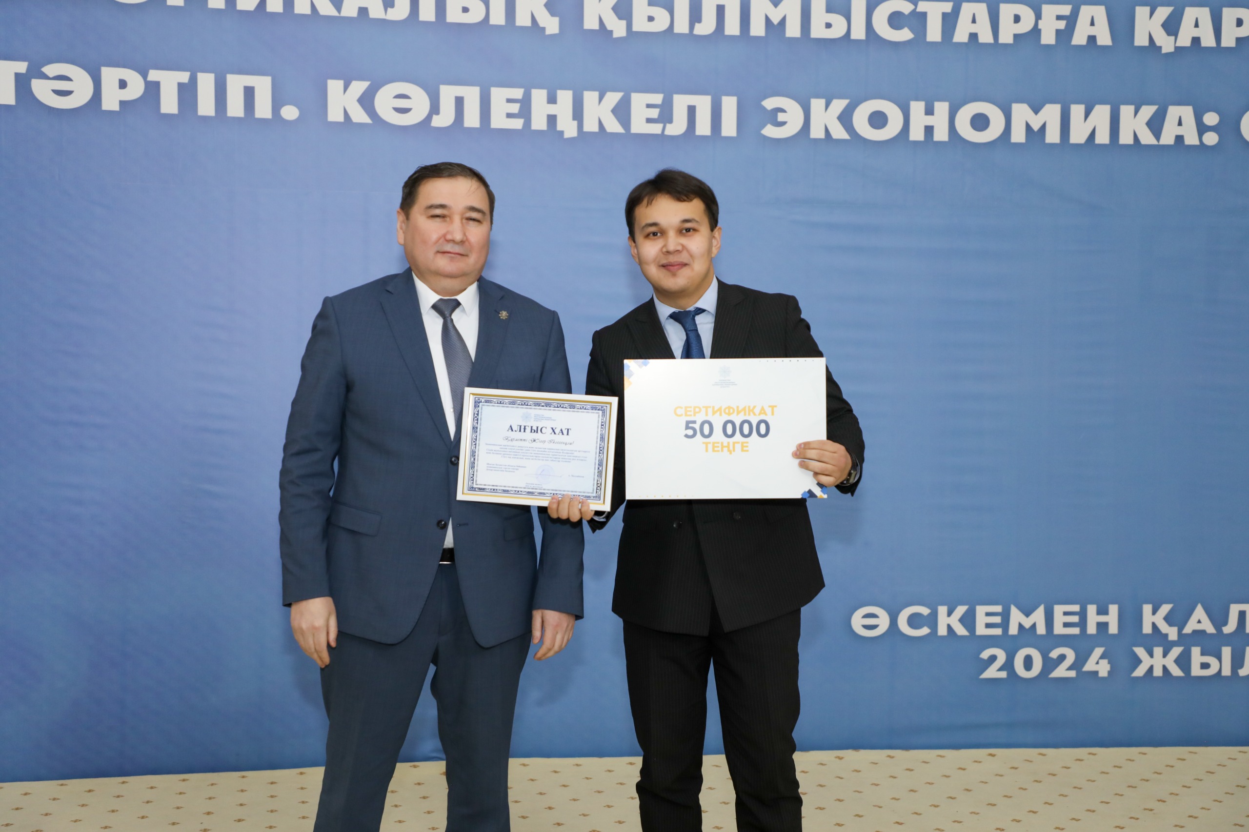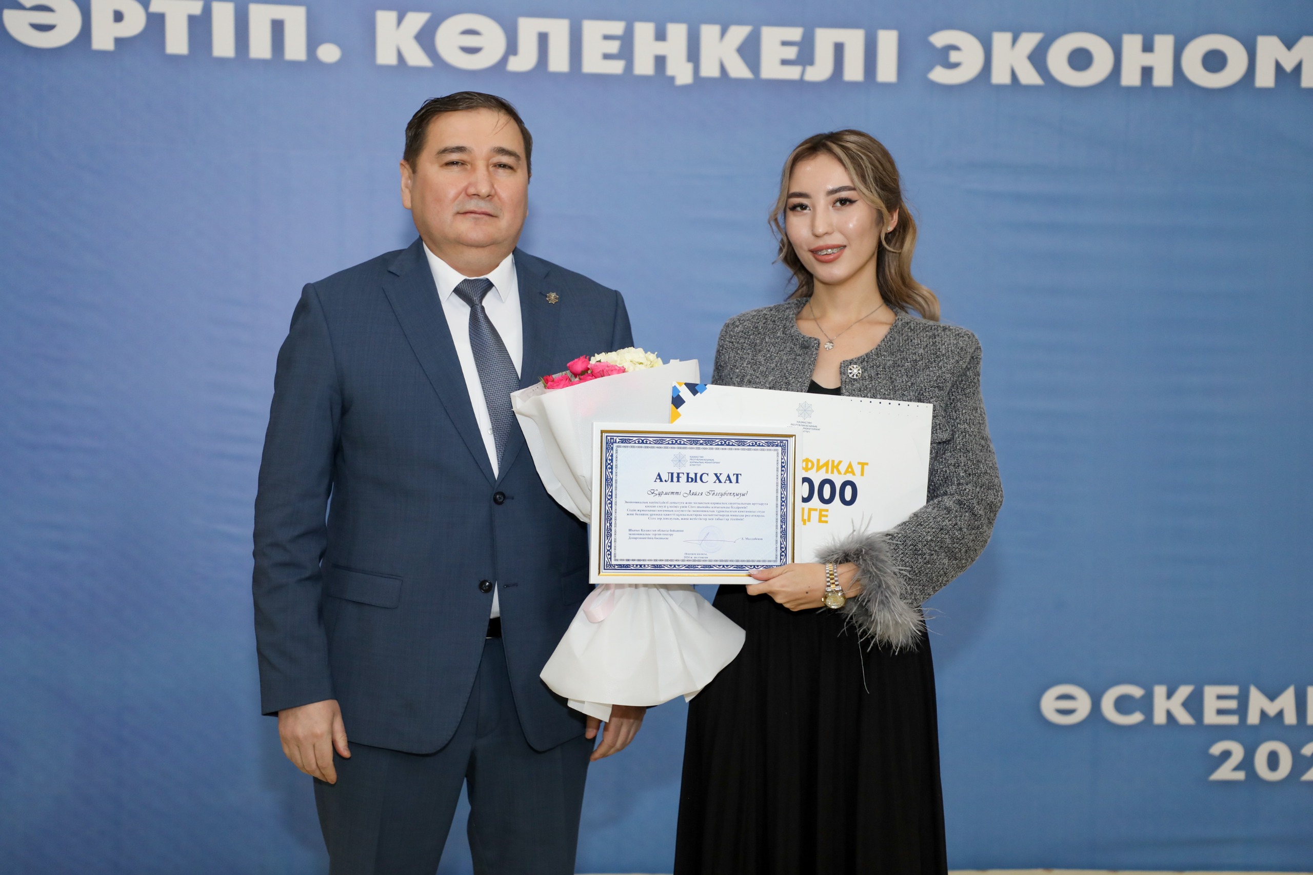 Благодарственным письмом от акима ВКО Ермека Кошербаева «За активную деятельность по профилактике теневой экономики, повышению финансовой грамотности населения» наградили ректора ВКТУ Сауле Рахметуллину.