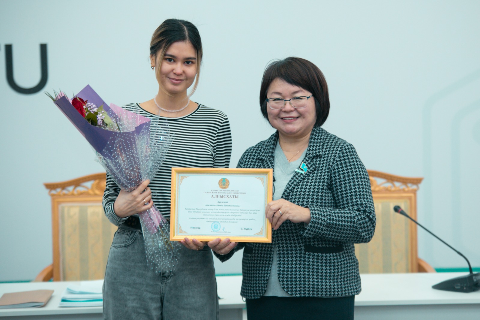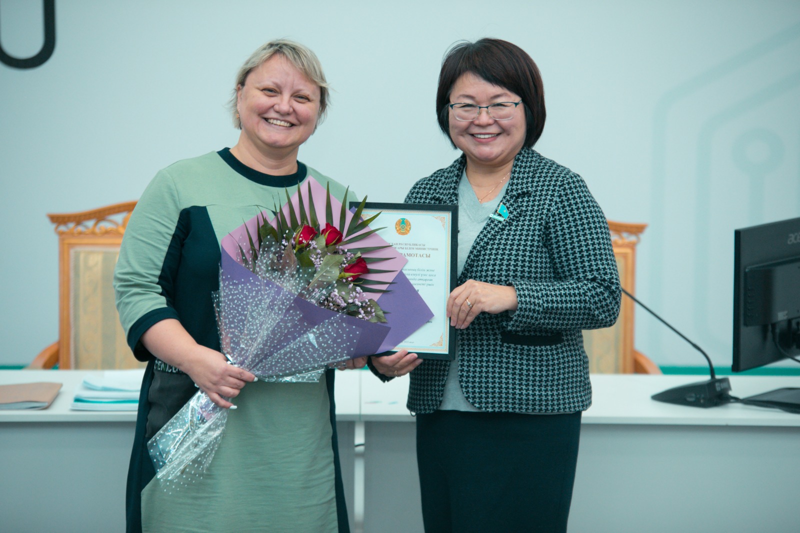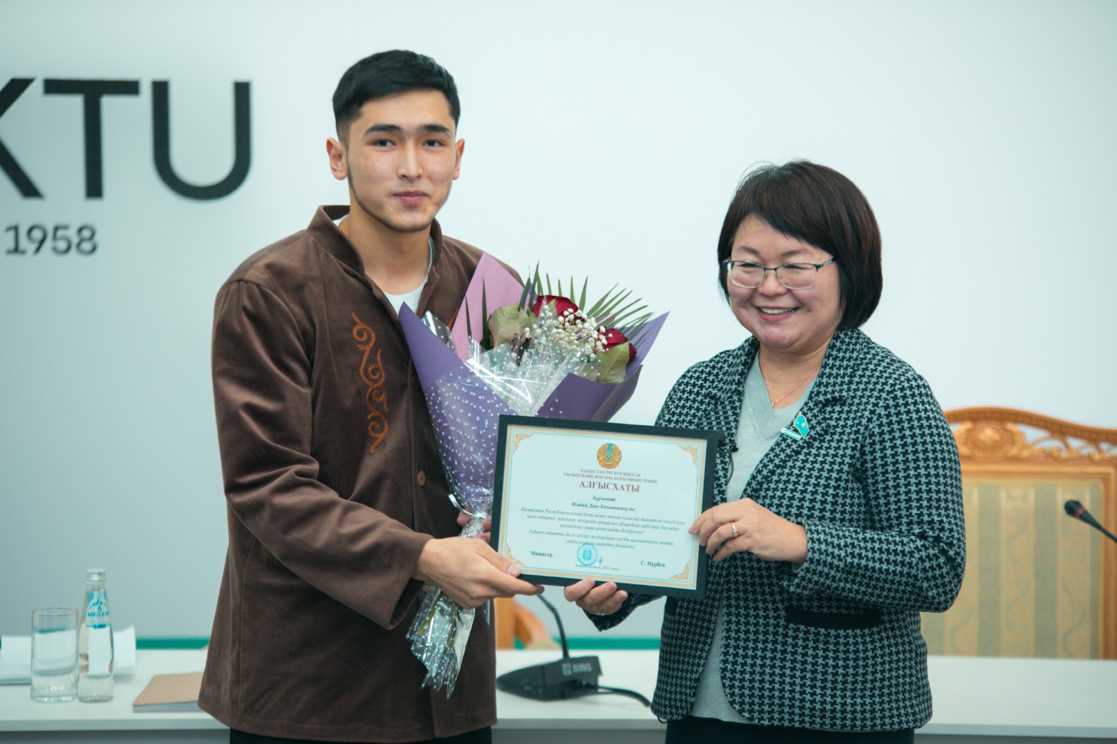 Началось оно с торжественной части - награждением отличившихся студентов и сотрудников грамотами и благодарственными письмами от Министра науки и высшего образования Саясата Нурбек.