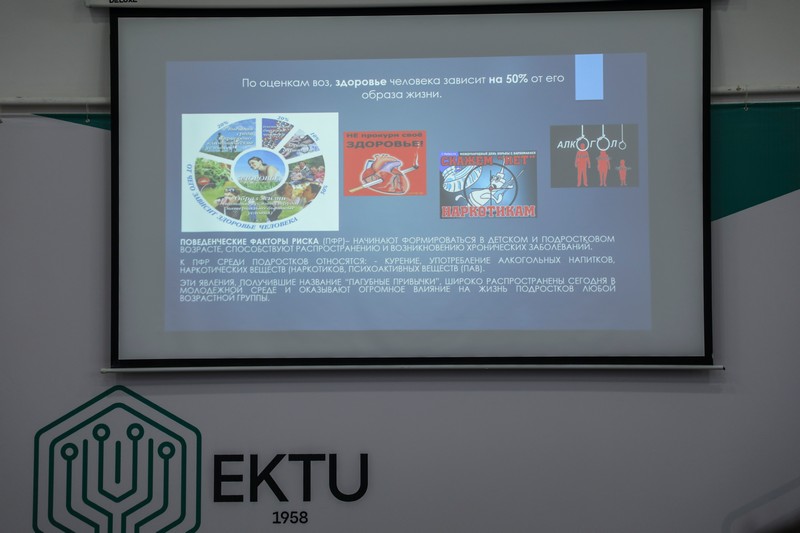 5 сентября специалист медицинского учреждения «Центр профилактической медицины «Шығыс» Джембаева А. М. на тему «Здоровое поколение» выступила с докладом для студентов по вопросам профилактики факторов риска девиантного поведения среди молодежи, в частности, по вопросам курения, алкоголизма, опасности наркотиков и электронных сигарет.