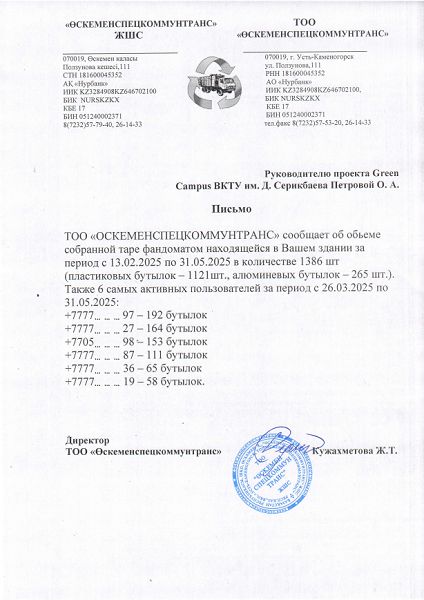С 26 марта в Восточно-Казахстанском техническом университете имени Д. Серикбаева проходил экологический конкурс по сбору пластиковых бутылок, который объединил неравнодушных к окружающей среде студентов, сотрудников и жителей города. Это событие стало ярким примером того, как каждый из нас может внести вклад в дело сохранения природы.