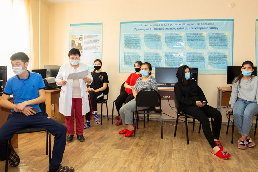 ШҚТУ-дың медициналық орталық маманы Жанат Темірханова студенттермен кездесіп, вакцина алудың маңыздылығы туралы айтты. Жиын №1 студенттік үйде болды.