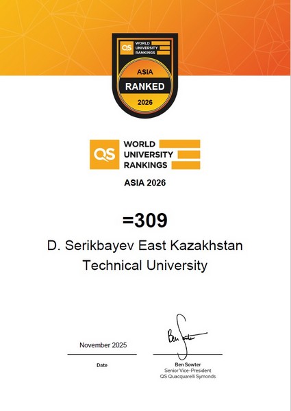 По итогам QS Asia 2026 ВКТУ представлен в рейтинге на 309 месте. В этом году ВКТУ продемонстрировал рост по ключевым показателям рейтинга: