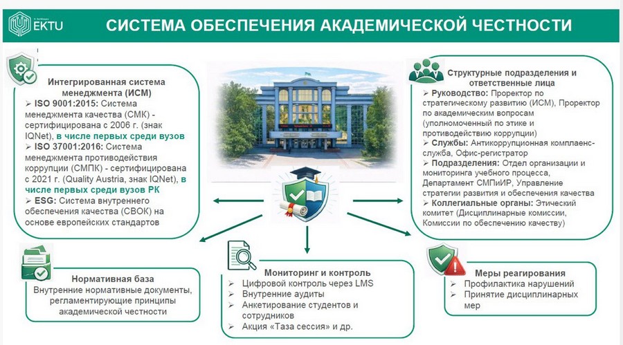 - білім алушылар мен оқытушылар арасында академиялық адалдық мәдениеті мен этикалық нормаларды дамыту;