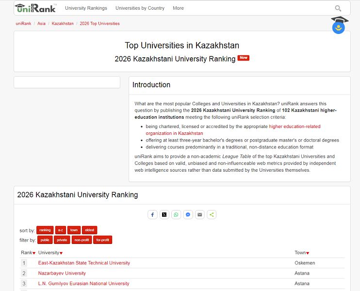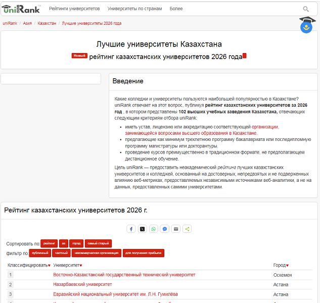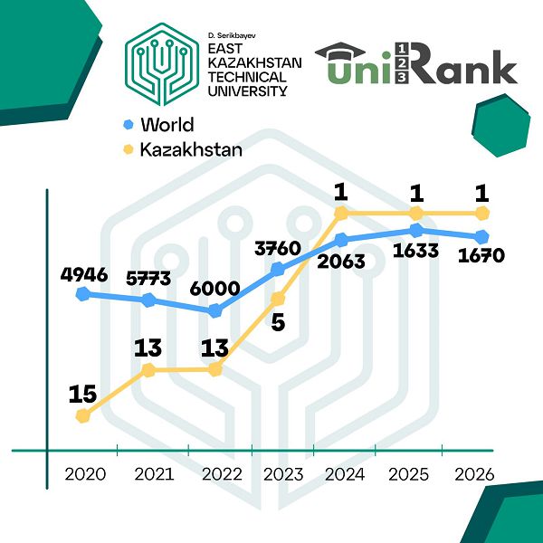 Восточно-Казахстанский технический университет имени Д. Серикбаева вновь подтвердил статус цифрового лидера, заняв 1 место среди казахстанских вузов в глобальном рейтинге мировых университетов и колледжей UniRank 2026!