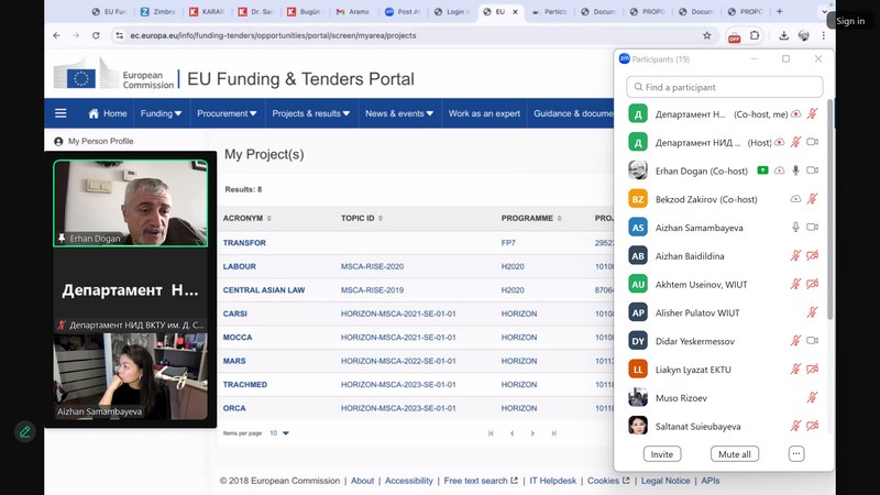 2024 жылдың 31 қазанында Д. Серікбаев атындағы Шығыс Қазақстан техникалық университетінің (ШҚТУ) Ғылыми-зерттеу қызметі департаменті университеттің профессорлық-оқытушылық құрамы мен ғылыми қызметкерлері үшін Marie Skłodowska-Curie Actions (MSCA) бағдарламасы бойынша ақпараттық сессия ұйымдастырды. Спикер ретінде Erasmus халықаралық жобаларына қатысу тәжірибесімен бөліскен және MSCA зерттеушілер үшін ұсынатын мүмкіндіктері туралы егжей-тегжейлі баяндаған Түркияның Мармара университетінің сарапшысы, Prof. Erhan Doğan сөз сөйледі.