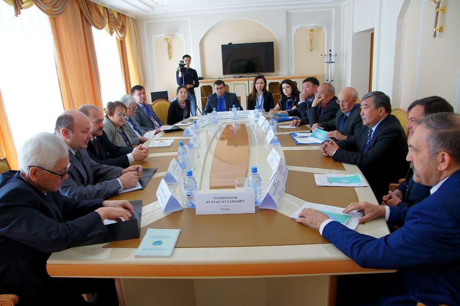 Бірінші күннің жартысында сыртқы сараптама комиссиясының мүшелері ректор - Н.М.Темірбековпен, университет проректорлары: оқу және әдістемелік істер жөніндегі - Н.Н.Линокпен, ғылым және халықаралық ынтымақтастық жөніндегі - О.Д. Гавриленкомен, тәрбие жұмысы және әлеуметтік даму жөніндегі - Ж.Д. Нәзбиевпен кездесті.