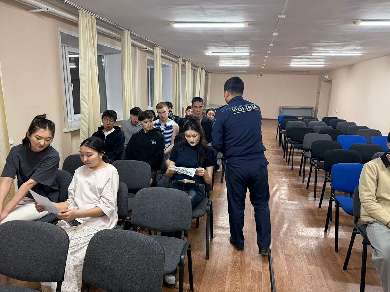 Кездесу барысында студенттер өздерін толғандырған сұрақтарын қойып, құқық қорғау саласының маманынан нақты жауаптар алды. Әсіресе, жастар арасында жиі кездесетін құқық бұзушылықтардың алдын алу, интернет алаяқтықтан сақтану, қоғамдық орындардағы тәртіп ережелері және заң талаптарын сақтау мәселелері кеңінен талқыланды.